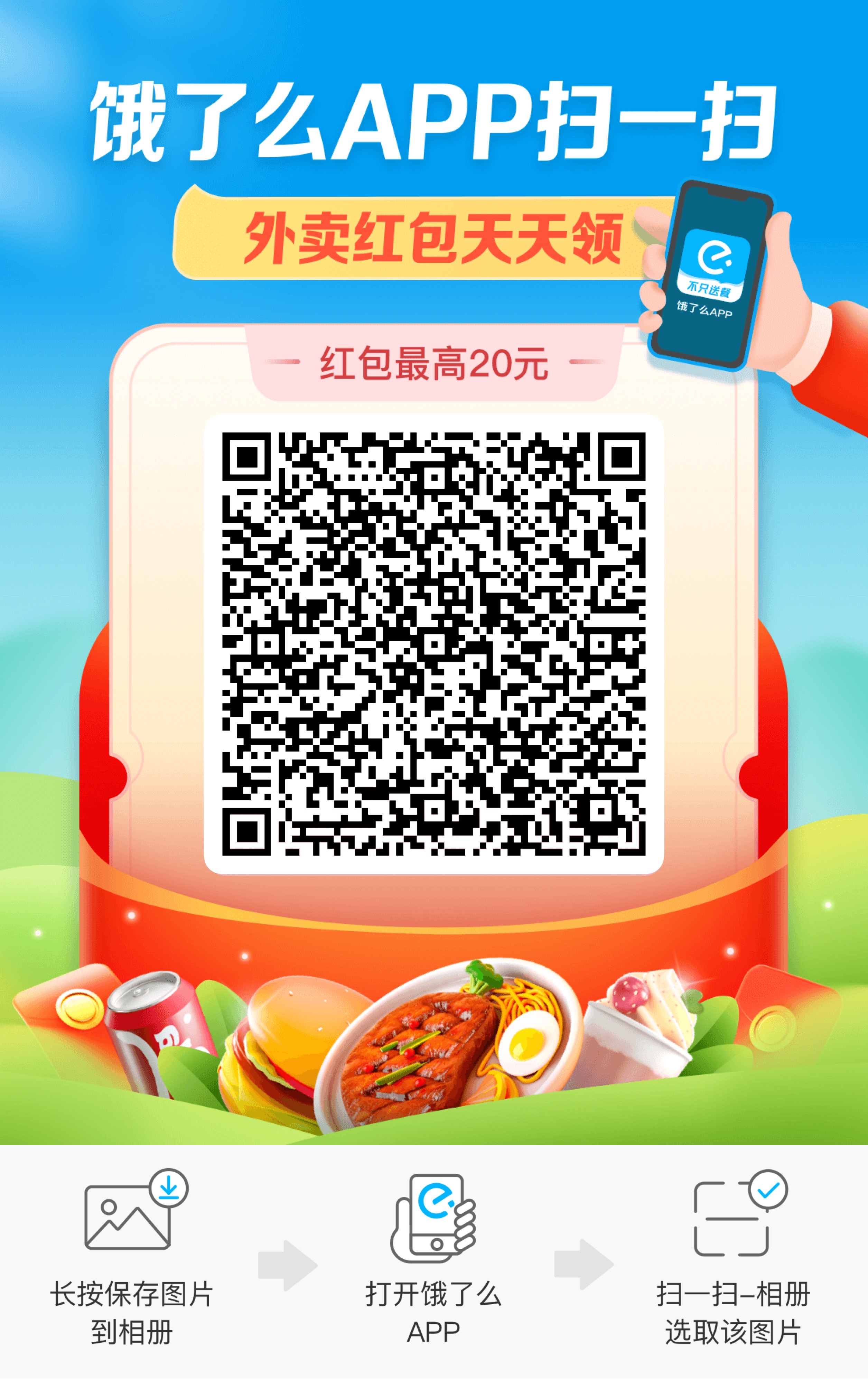 截图用饿了么扫一扫,每天领取最高20元无门槛红包!